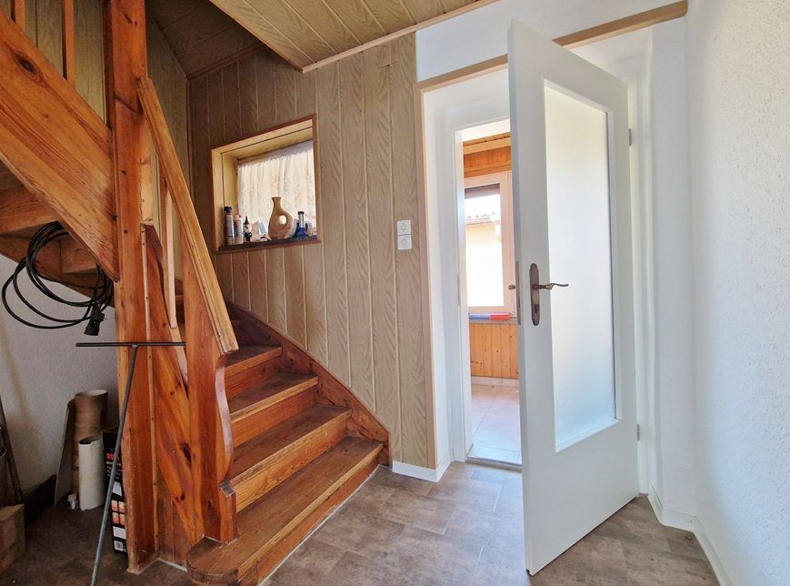 Im Obergeschoss befinden sich 5 weitere Zimmer, eine große Küche mit Abstellraum und ein Bad mit Dusche.