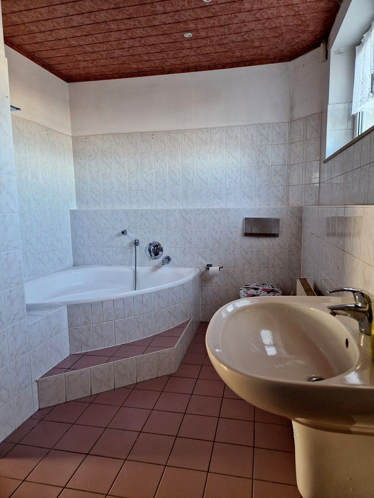 Im Erdgeschoss befinden sich 5 Wohnräume, die Küche, sowie ein Badezimmer mit Badewanne.