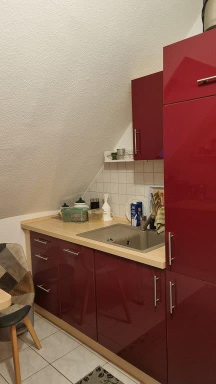 Die Wohnung befindet sich im Dachgeschoß und verfügt 1 Wohnzimmer, 1 Schlafzimmer, 1 Küche sowie ein Badezimmer. Die vorhandene Einbauküche kann gern vom Vormieter übernommen werden. Ein PKW-Stellplatz ist vorhanden.